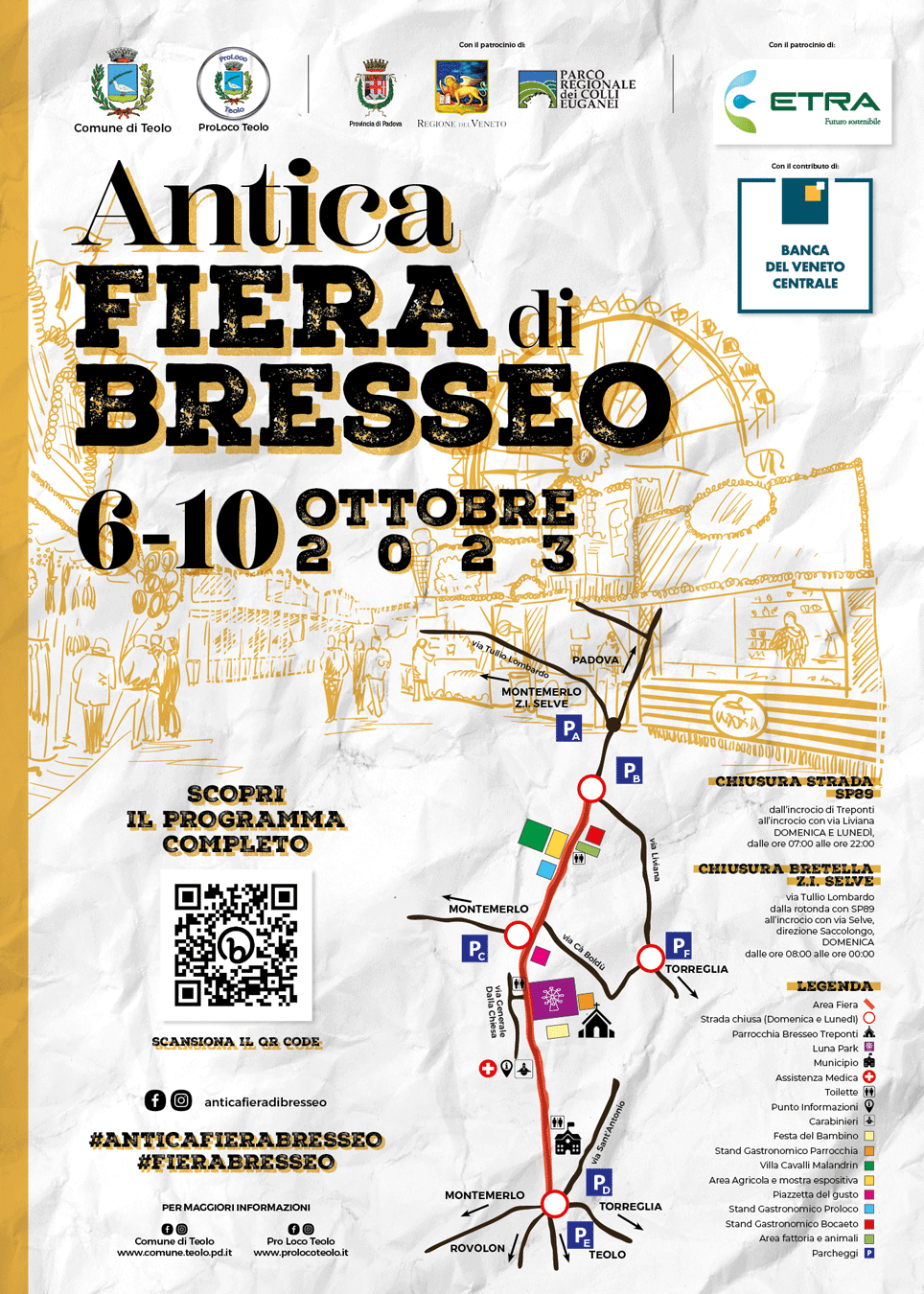 Ore10:00 Corteo di Apertura dell’Antica Fiera di Bresseo,con sfilata delle associazioni del territorio,con partenza dal Municipio e arrivo di fronte Villa Cavalli-Malandrin con esibizione della Banda Musicale di Teolo e Gruppo sbandieratori di Montagnana.