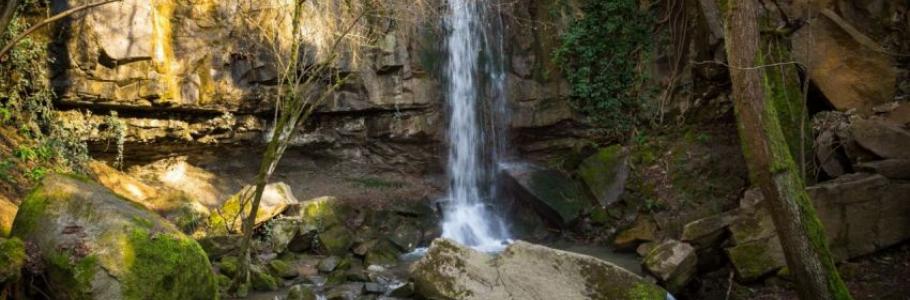Per arrivare sul corso d’acqua che si trova infossato nella gola rocciosa, occorre imboccare il sentierino che scende sulla destra: percorrendolo si passa accanto ai ruderi di un vecchio mulino, testimonianza di un'attività antropica ormai del tutto scomparsa. Una volta scesi all'altezza del letto del torrentello si riesce ad ammirare in tutta la sua bellezza la cascata, che non è sicuramente imponente, ma risulta senz'altro emozionante per il contesto naturalistico in cui è inserita.