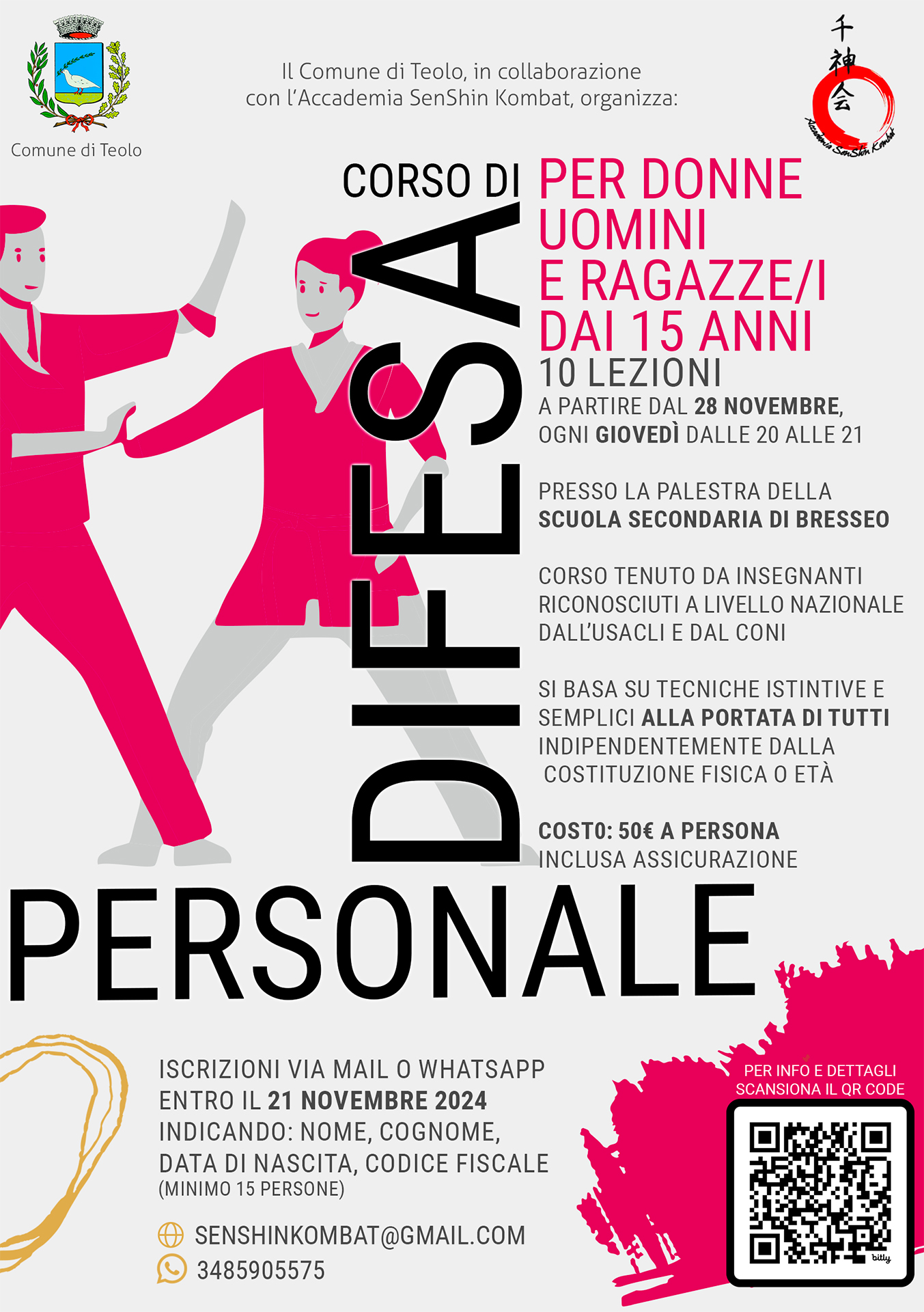 10 lezioni a partire dal 28 novembre, ogni GIOVEDI dalle 20 alle 21 presso la palestra della Scuola secondaria di Bresseo