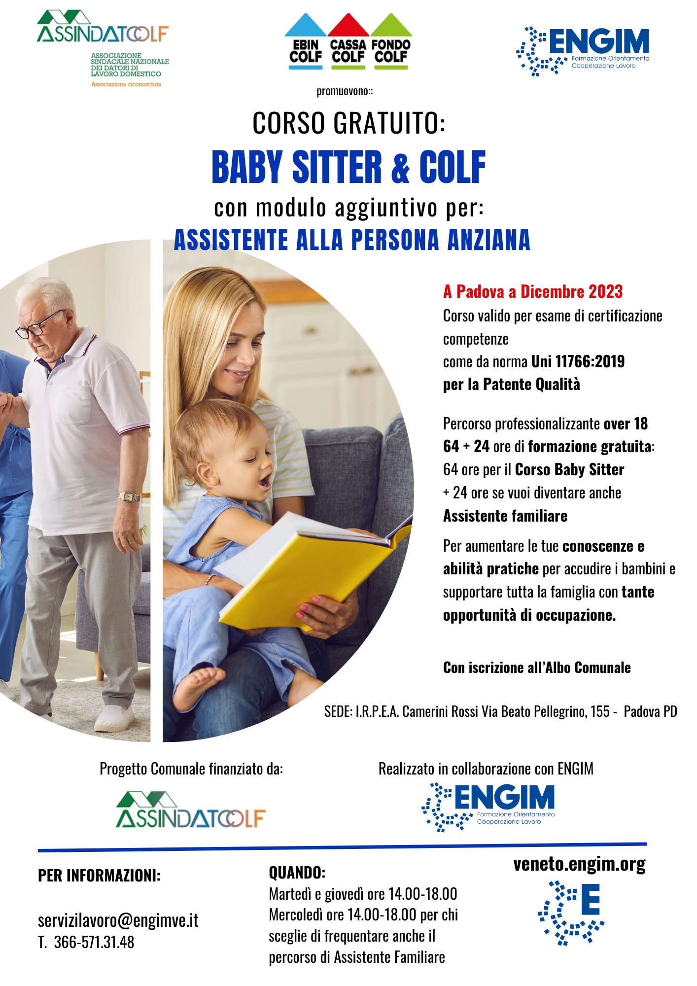 CORSO GRATUITO: BABY SITTER & COLF con modulo aggiuntivo per: ASSISTENTE ALLA PERSONA ANZIANA