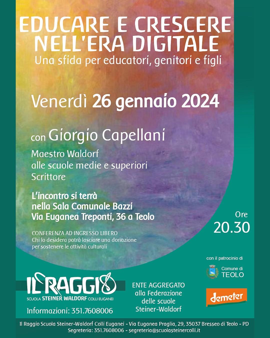 Con il patrocinio del Comune di Teolo e in collaborazione con il Il Raggio Scuola Steiner-Waldorf Colli Euganei.
