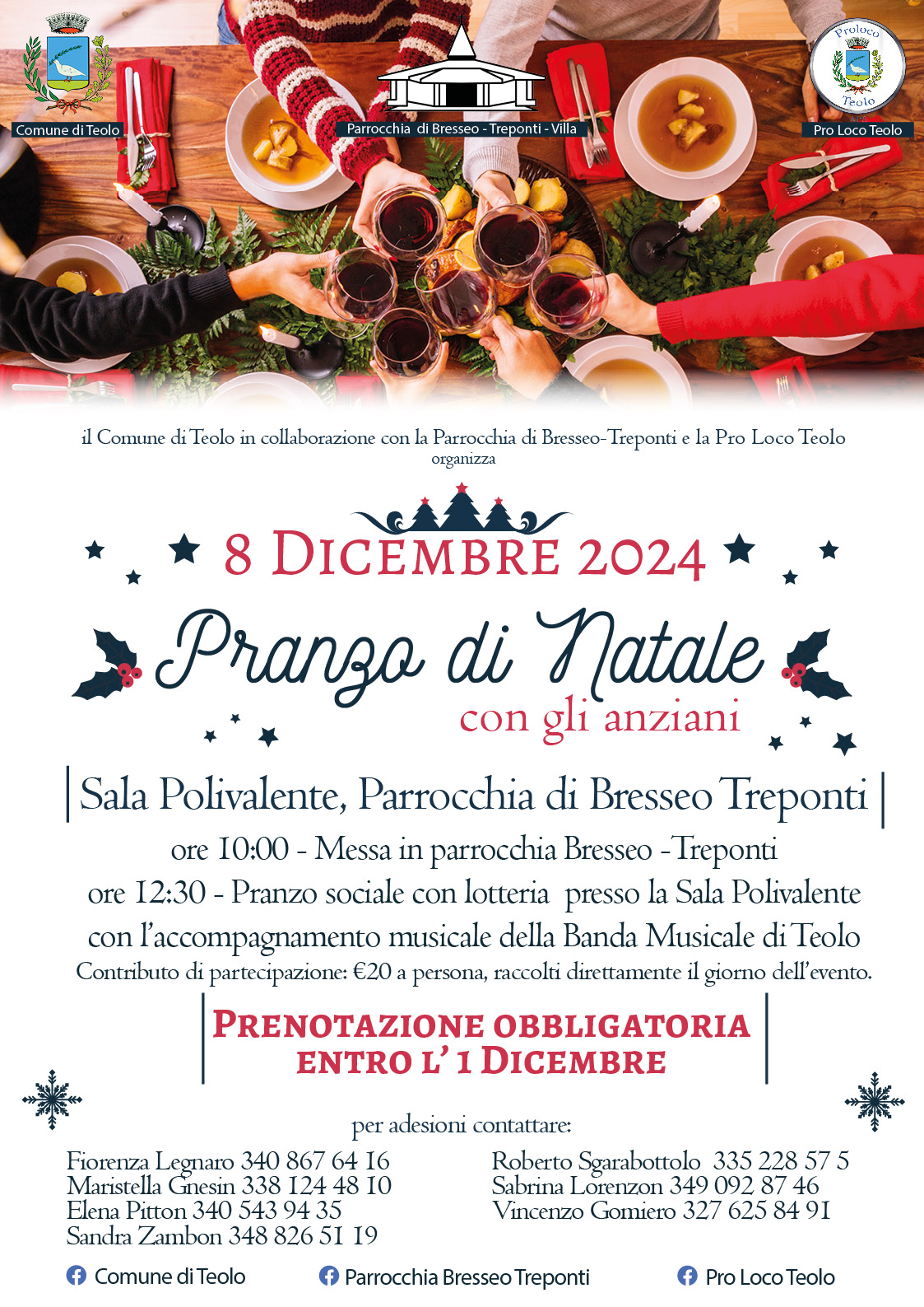 Prenotazione obbligatoria entro l'1 Dicembre, per adesioni contattare:
