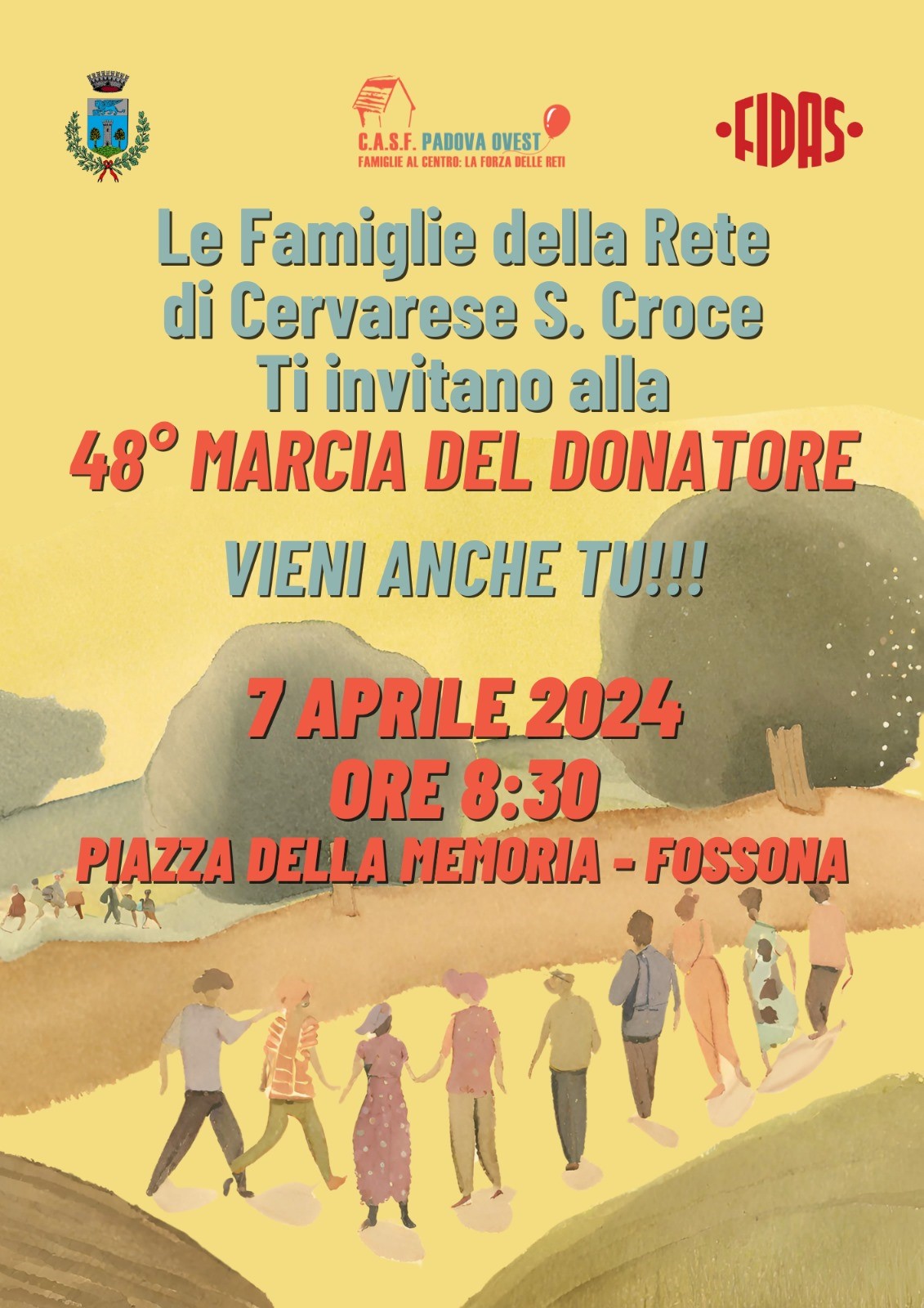 Domenica 7 aprile 2024, a Fossona di Cervarese S.C. avrà luogo la 48° Marcia del Donatore di sangue.