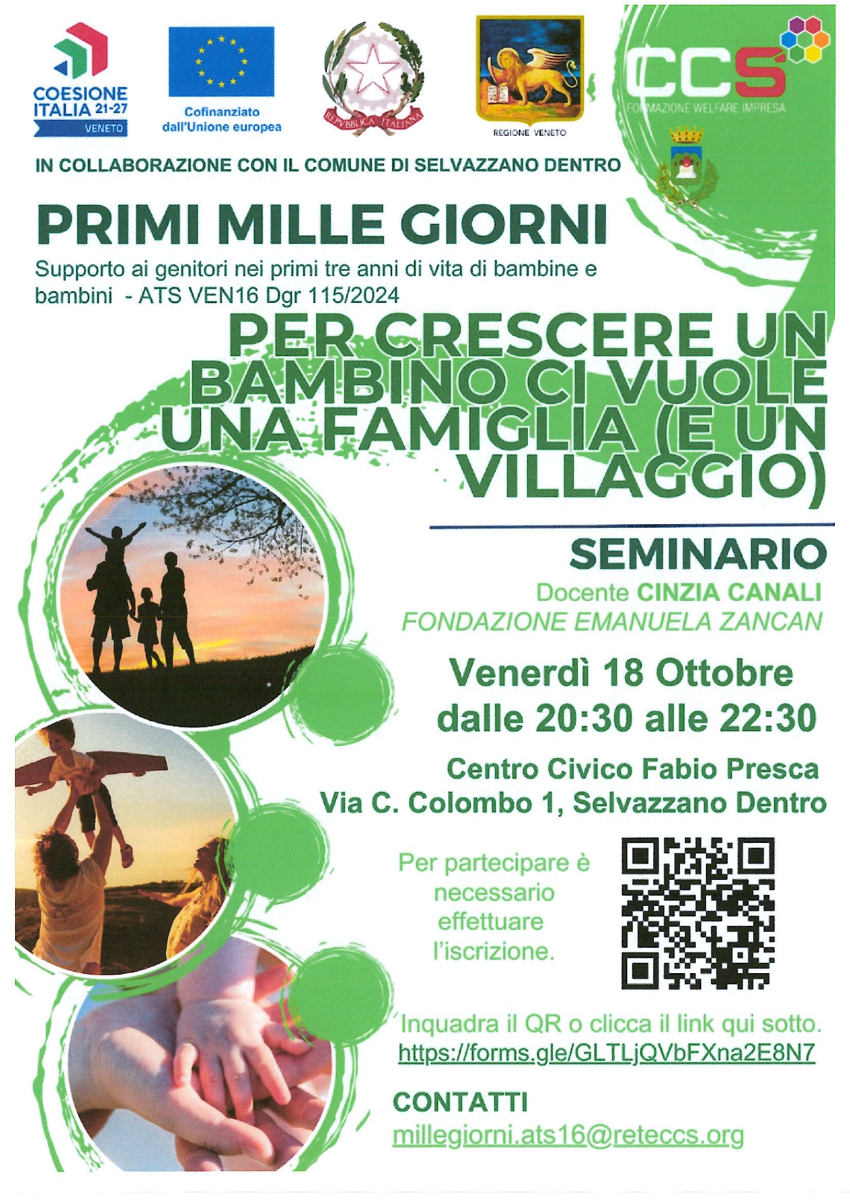 Avvio Progetto "PRIMI MILLE GIORNI" - Supporto ai genitori nei primi tre anni di vita di bambine e bambini - Primo seminario.