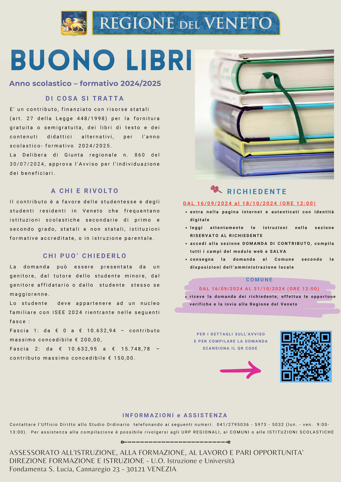 Il contributo è a favore delle studentesse e degli studenti residenti in Veneto che frequentano istituzioni scolastiche secondarie di primo e secondo grado, statali e non statali, istituzioni formative accreditate, o in istruzione parentale.