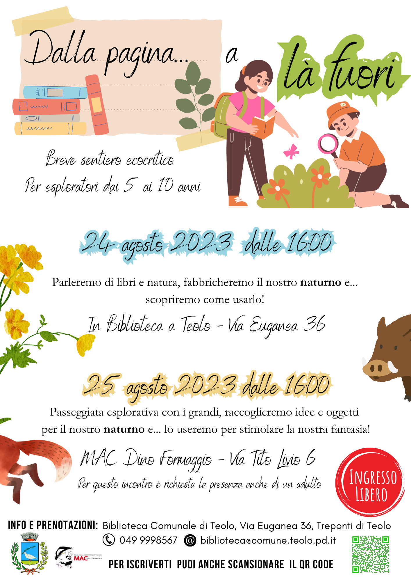 Dalla pagina a là fuori è un esperimento di sentiero ecocritico, proposta educativa per piccoli “costruttori di ponti” tra libri, natura, sentimenti e futuro sostenibile.