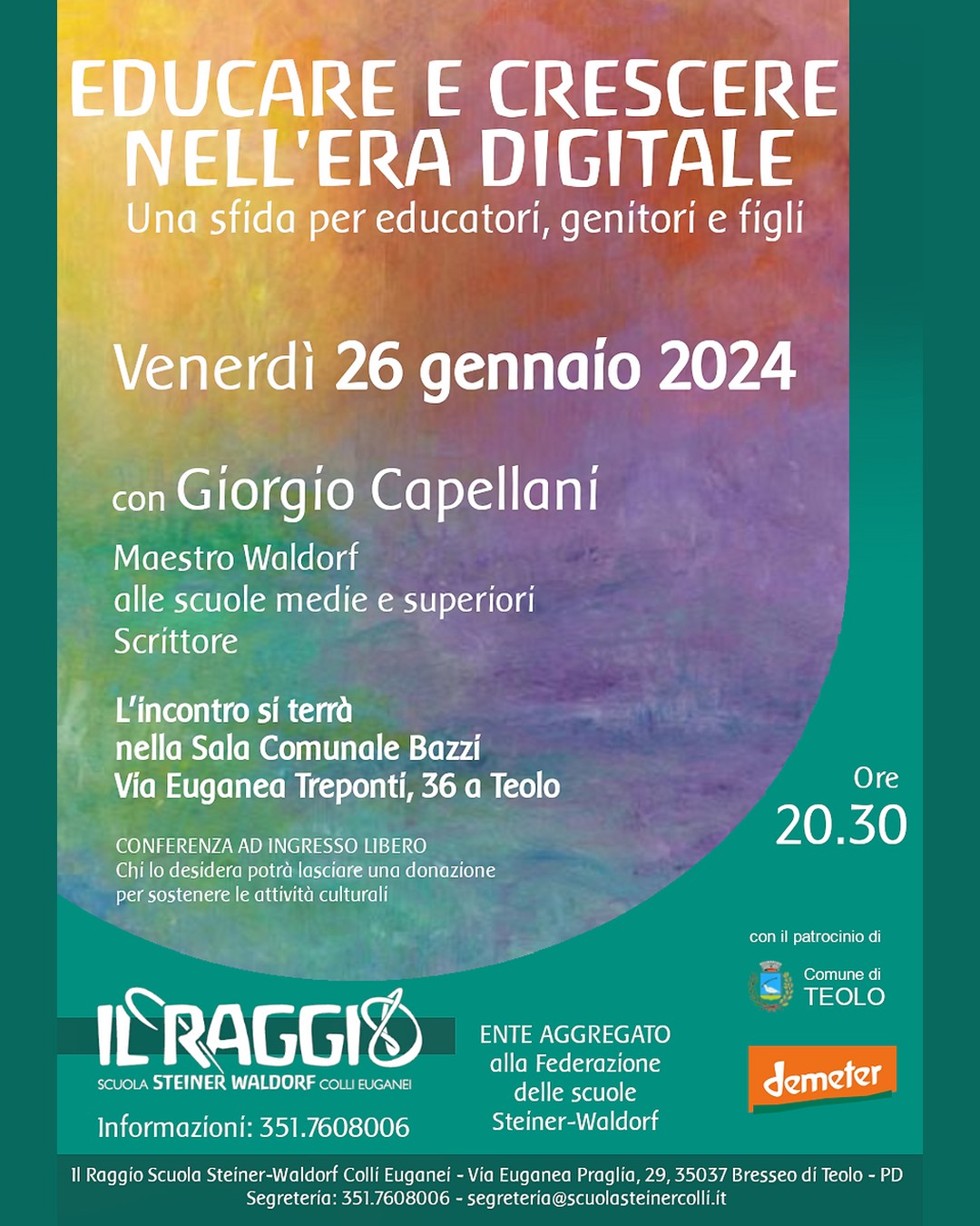 Con il patrocinio del Comune di Teolo e in collaborazione con il Il Raggio Scuola Steiner-Waldorf Colli Euganei.