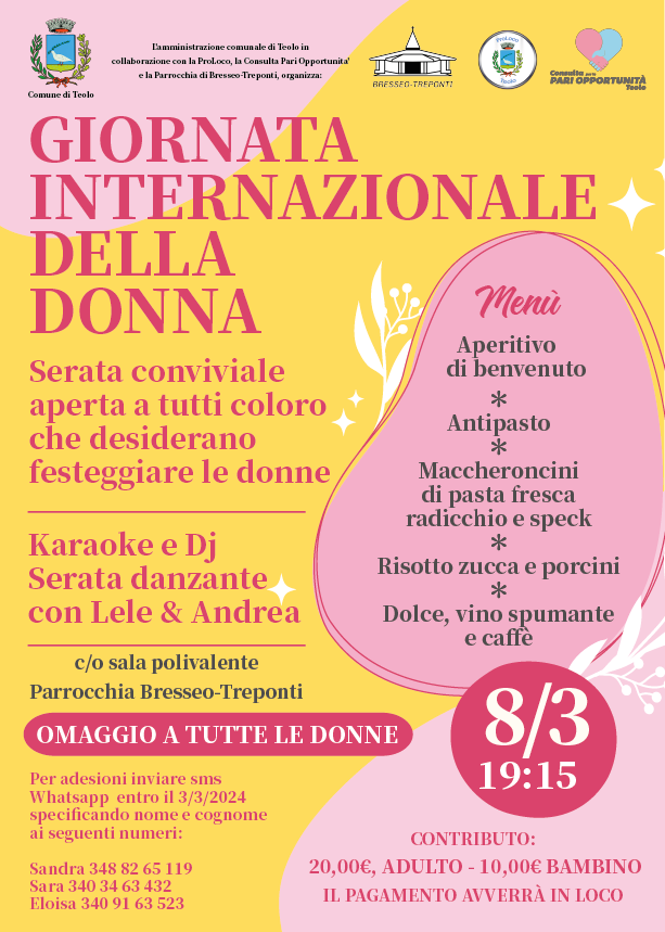 Serata conviviale aperta a tutti coloro che desiderano festeggiare le donne