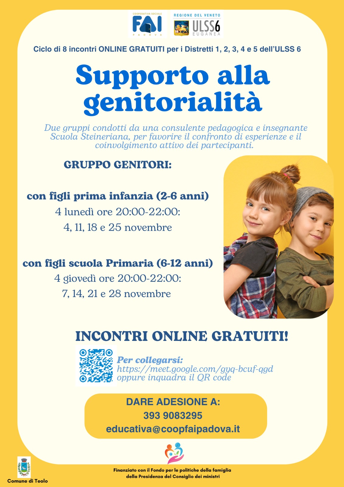 4 lunedì ore 20:00-22:00: 4, 11, 18 e 25 novembre - con figli scuola Primaria (6-12 anni)