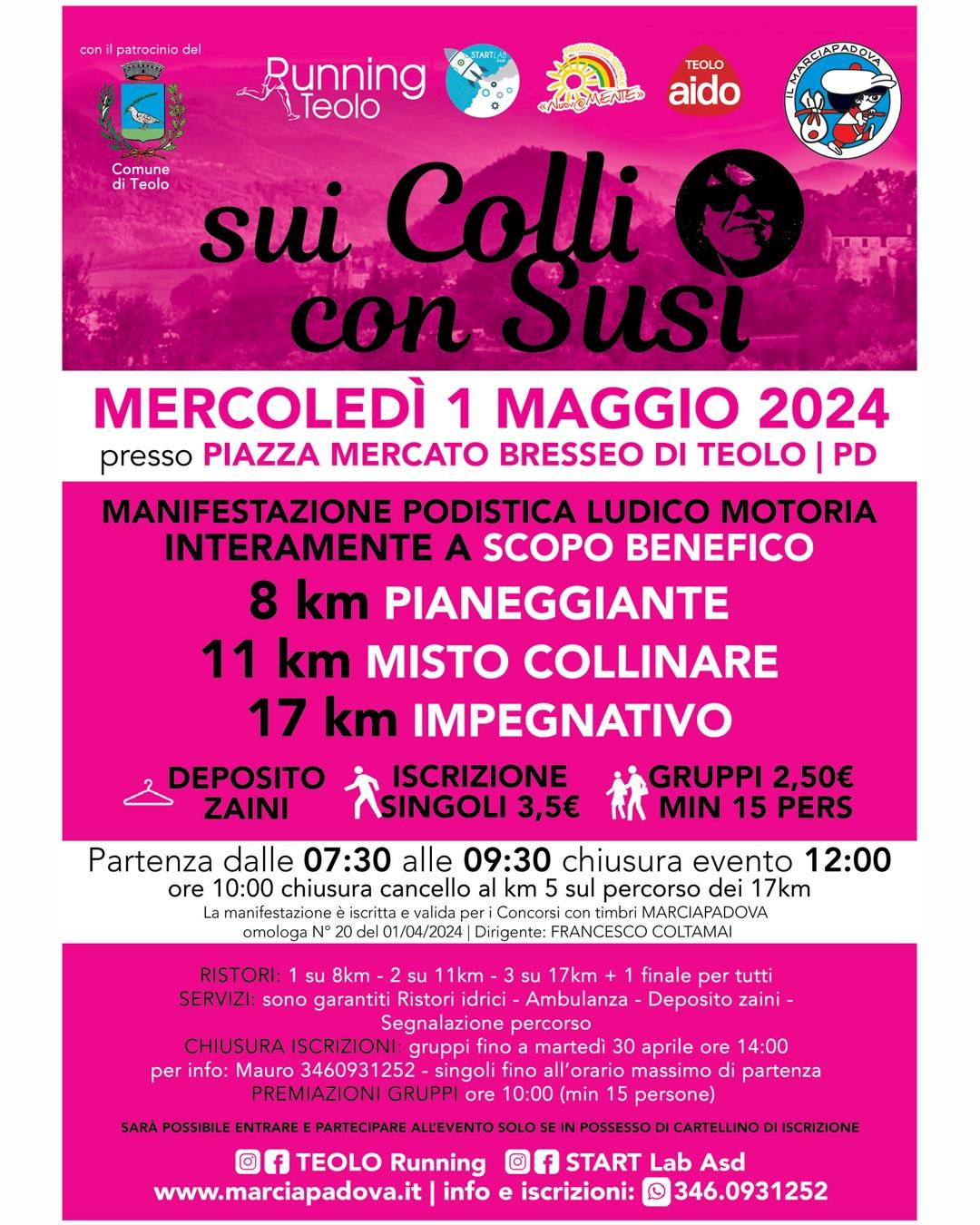 MANIFESTAZIONE PODISTICA LUDICO MOTORIA INTERAMENTE A SCOPO BENEFICO, in ricordo di Susi Crescenzio, organizzata da Teolo Running e StartLab A.s.d.